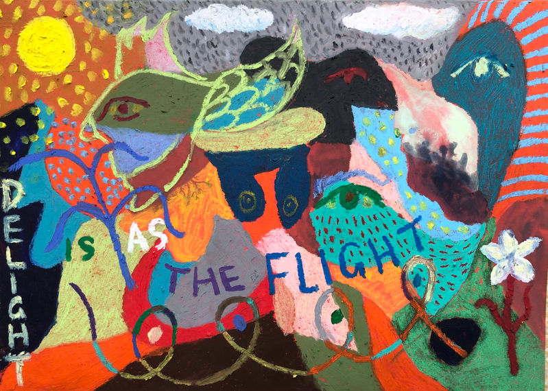 'Delight is as the Flight', oil pastel and soft pastel on coloured paper
